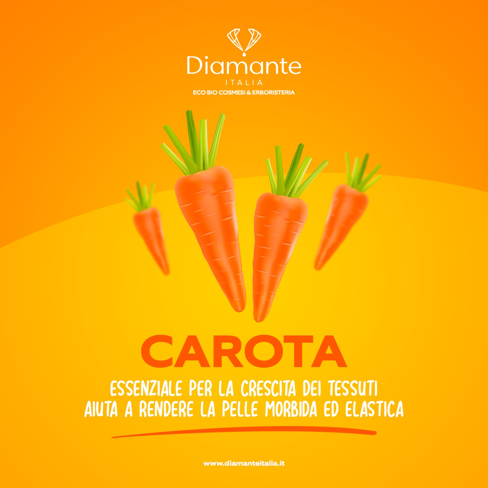 La carota è presente in alcuni dei nostri prodotti cosmetici, come Daily Nutrition, Doccia Shampoo al Cocco, Gel Caroten Cocco. La carota e il betacarotene sono essenziali per la crescita dei tessuti e aiuta a rendere la pelle morbida ed elastica. Inoltre svolge un’azione cicatrizzante e rigenerante.
