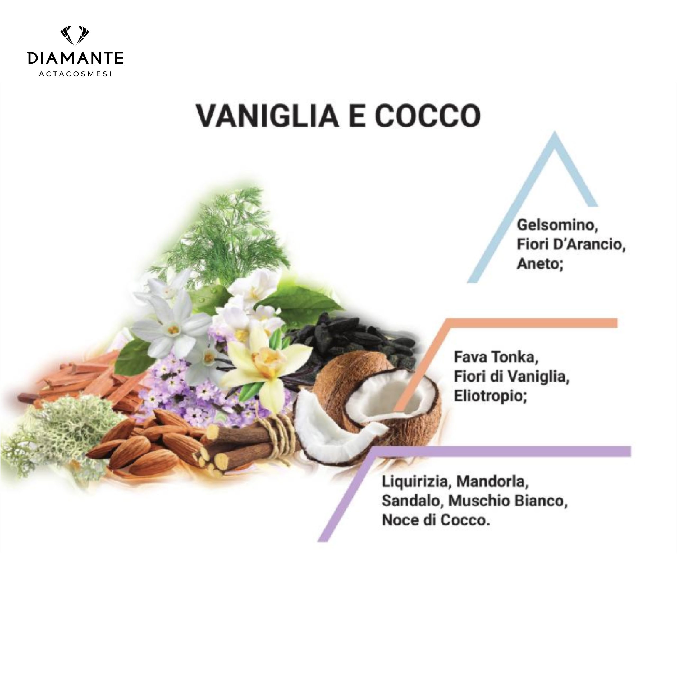Il mistero del Cocco: il frutto della sensualità il cui profumo affascina ed avvolge e l’inebriante Vaniglia dalle morbide note fragranti e gourmand, creano una fusione irresistibile e seducente un’alchimia dolce e sensuale fino a catturare i sensi!
