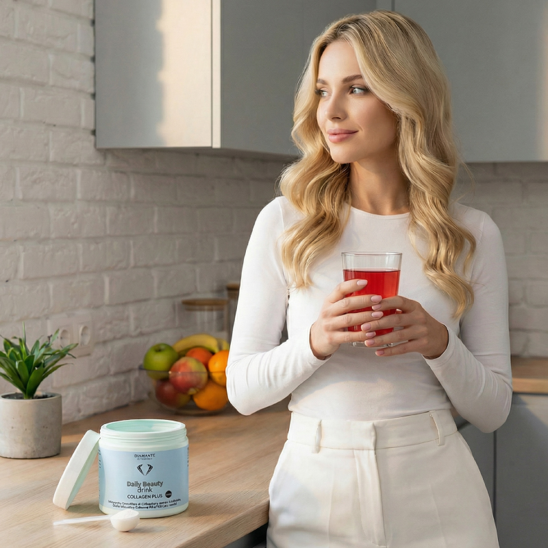 Il Daily Beauty Drink è un integratore alimentare che combina il potere del collagene idrolizzato, dell’acido ialuronico, e della vitamina C per supportare la salute della pelle e delle articolazioni. Questi ingredienti sono facilmente assimilabili dal corpo, attraversando la barriera intestinale per raggiungere direttamente il derma, dove svolgono un’azione rigenerante e protettiva.