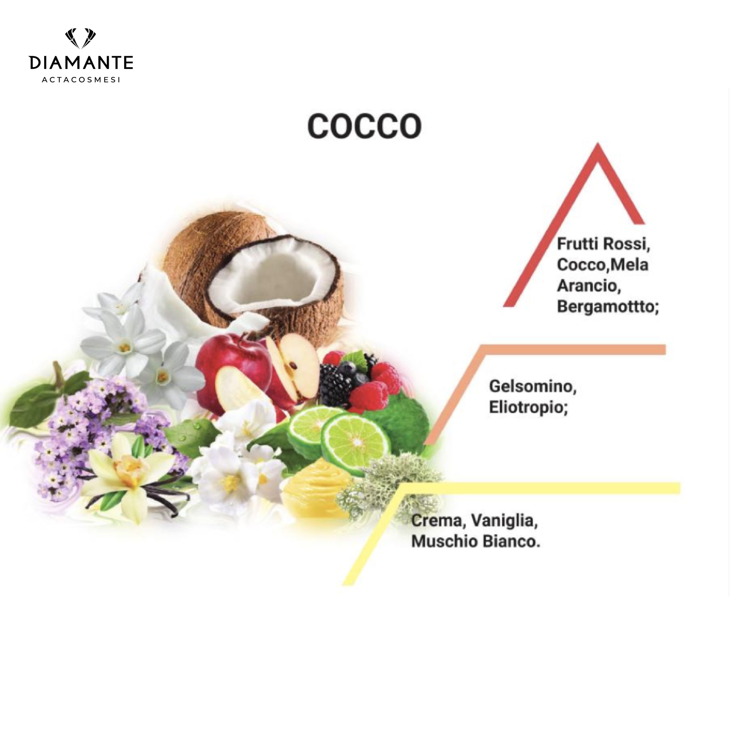 . NOTE DI TESTA: Frutti Rossi, Cocco, Mela, Arancio, Bergamotto;